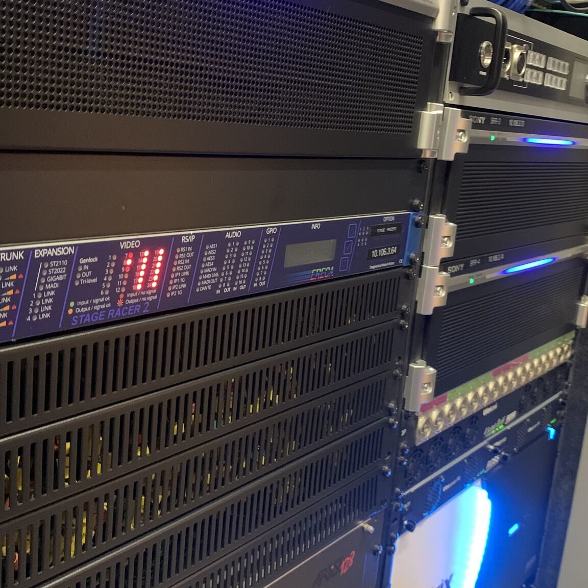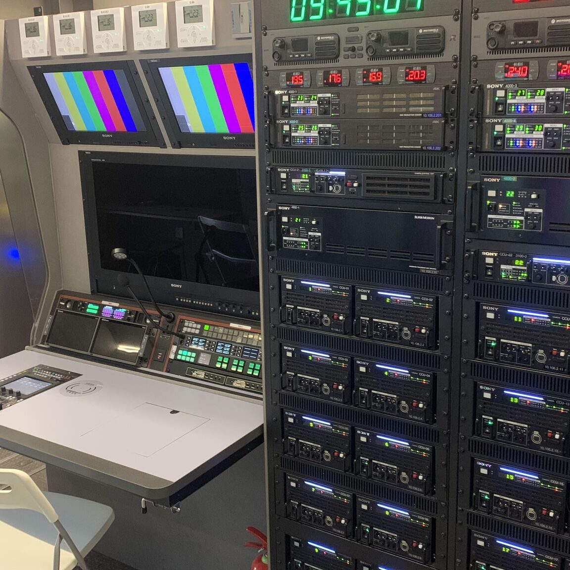 The main cutting system is the IP system and 4K 12G as baseband system. ERECA STAGE RACER 2 was used to as a transmission solution between the OB truck and the Satellite vehicles for sending the signal back to the station headquarter. Transmission signal includes video signals, audio signals, synchronization signals, Intercom signals, control signals, etc.